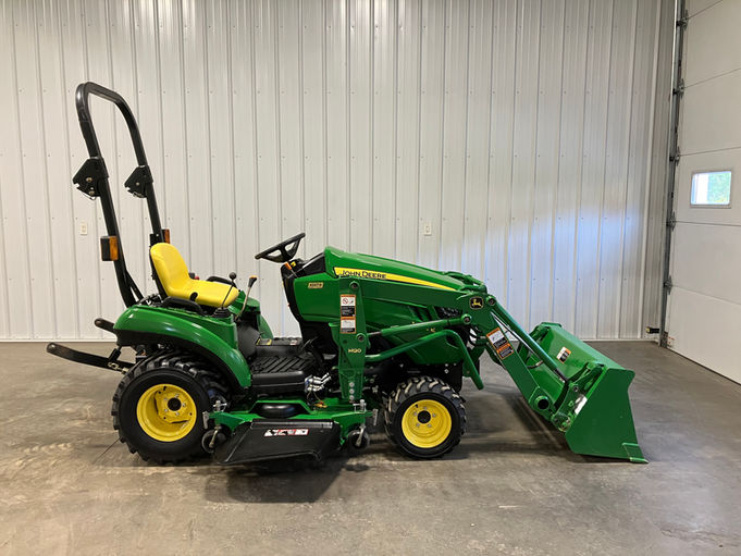Comes with newer 120R loader with QA Bucket and 60" Drive Over AutoConnect Deck.